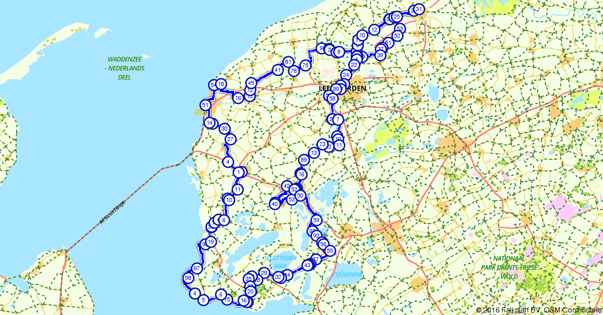 Elfstedentocht / elfstedenpad (hele route) 283 km.