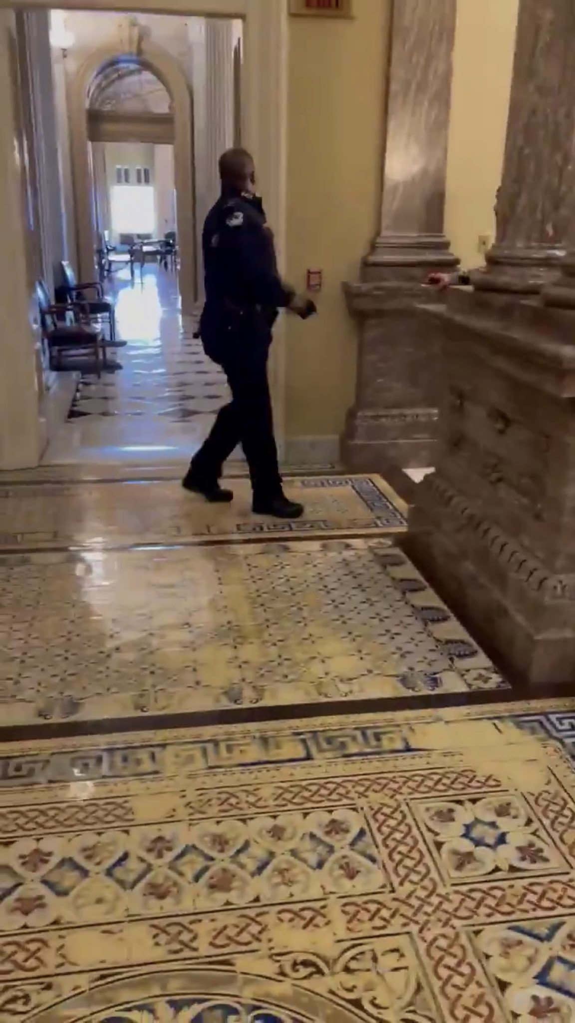 Eugene goodman, un policier travaillant au capitole, a permis de faire gagner à la sécurité de précieuses secondes pour faire évacuer le reste de sénateurs présents.
