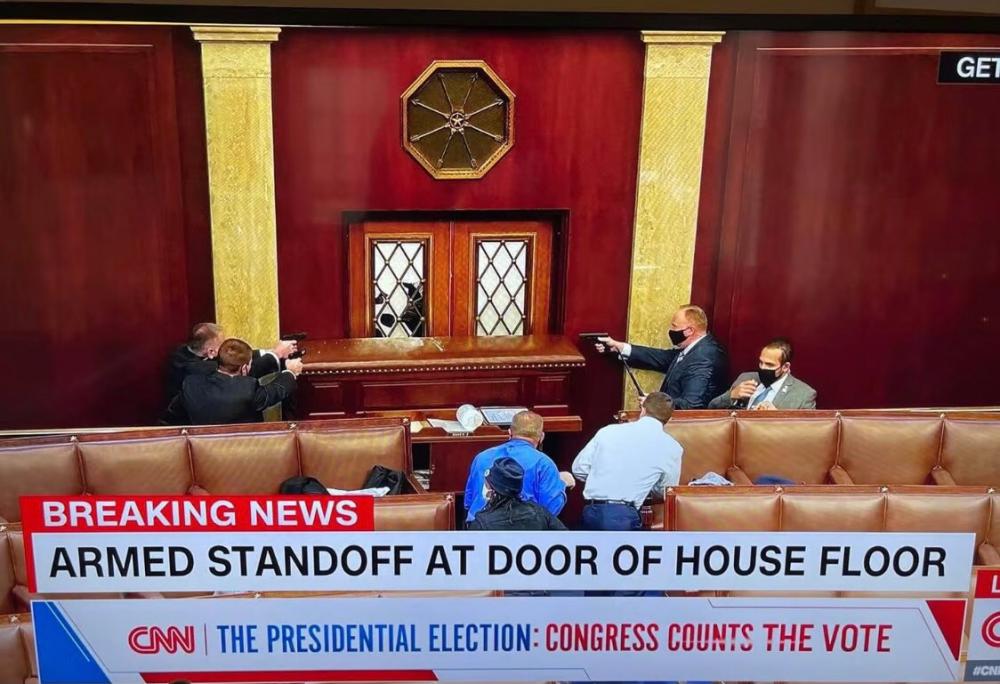 Insurrectionists Storm Capitol . Trump Supporters Seen Here Discharging A Fire Extinguisher, And Officers Are Literally Standing There And Watching Them.