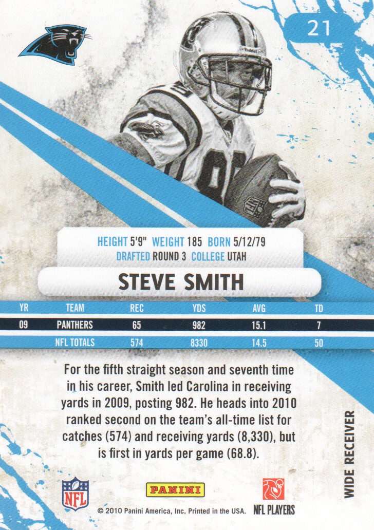 Steve Smith Carolina Panthers . 2010 Panini Rookies & Stars Nfl Football #21 Steve Smith ...